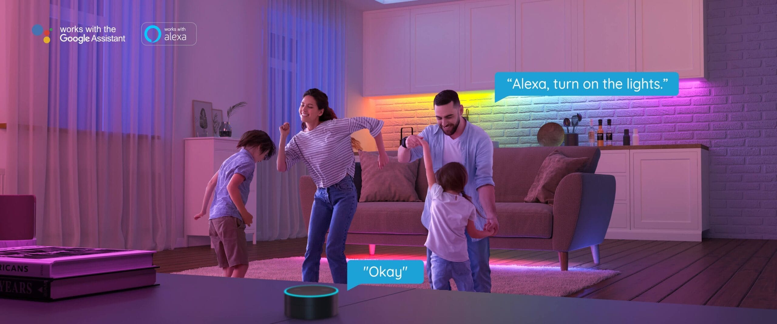 Banda LED RGBIC se poate conecta la Alexa și Google Assistant, putand să o porniți / să o opriți, să schimbați culorile și să reglați luminozitatea cu vocea dvs. Cu aplicația Govee Home, veți avea, de asemenea, acces la moduri incredibile de scenă și muzică, efecte de lumină și 16 milioane de culori. Pentru un control mai direct puteti utiliza controlerul de conectare.