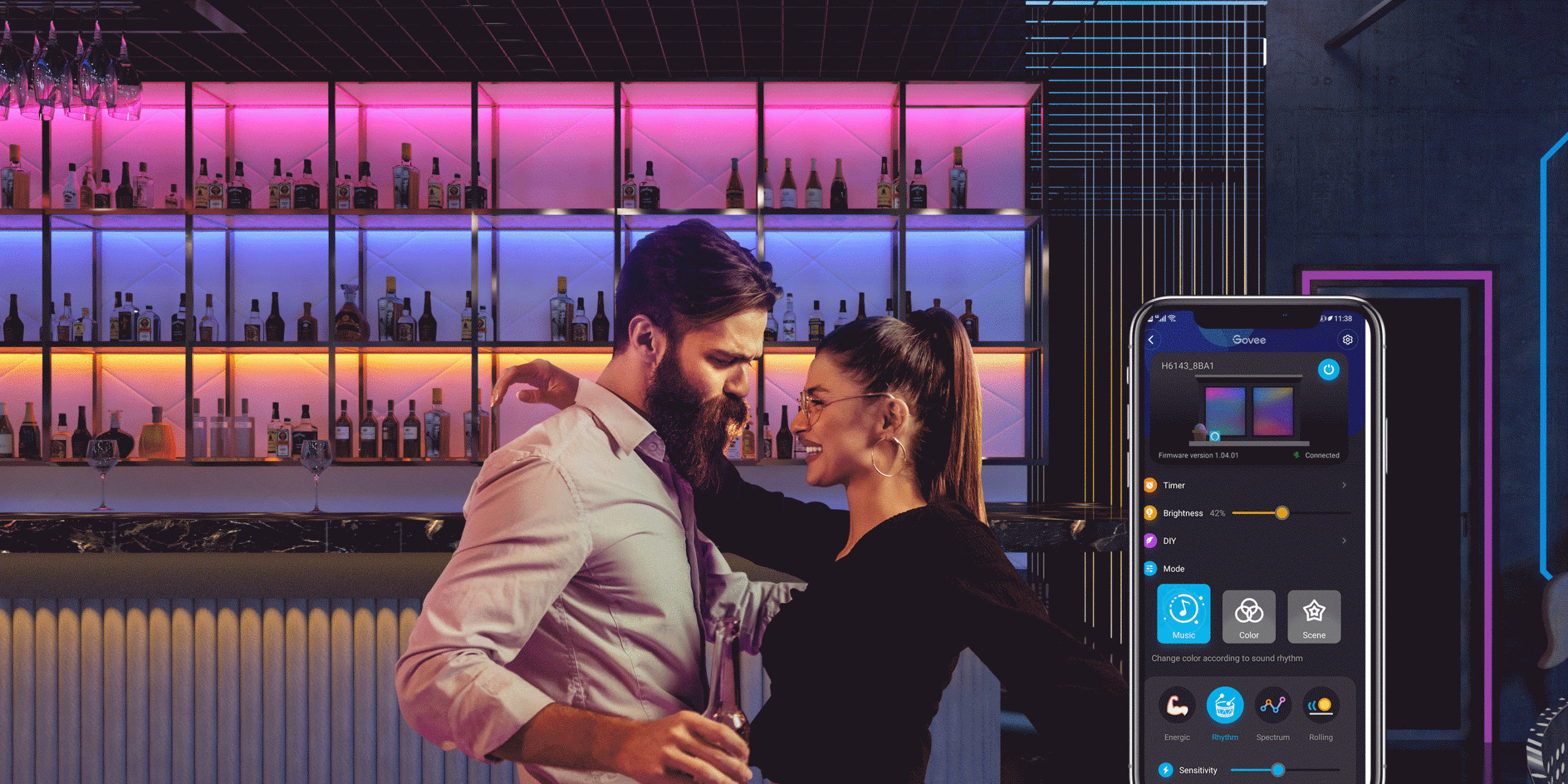 Creați atmosfera ideală pentru activitățile dvs. de interior datorită efectelor de iluminare pline de viață. Pentru mai multă libertate creativă, utilizați modul DIY prin aplicația Govee Home, care vă permite să vă personalizați propriile moduri de scenă. Ai planificat o petrecere? Adăugați mai multă culoare care stimulează starea de spirit și iluminare energică cu modul Rainbow.