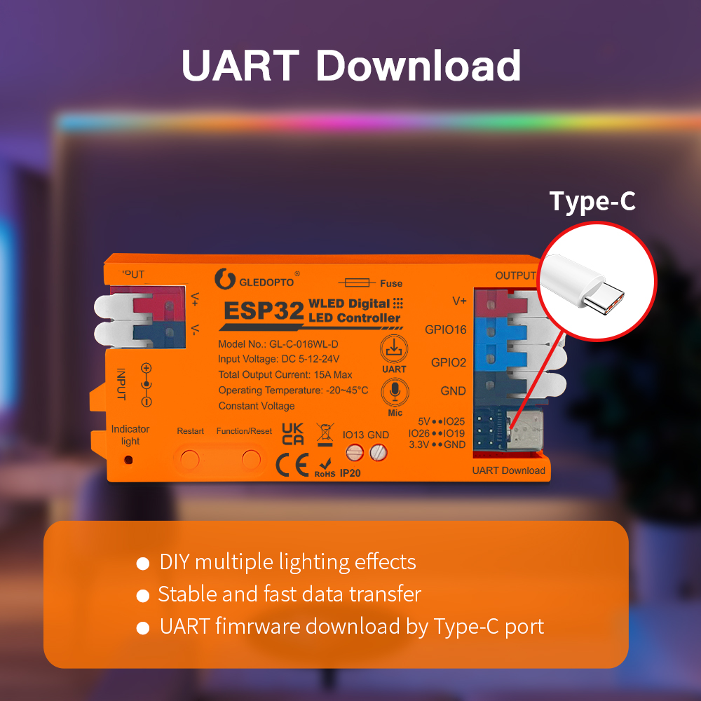 Gledopto GL-C-016WL-D Controler ESP32 WLED Digital cu microfon