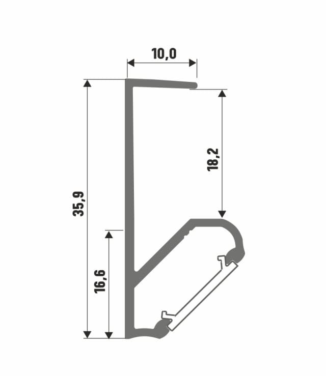 Schema traseului cablului de alimentare cu asamblul sistemului de iluminat cu utilizarea profilului Q18 ,banda LED si capac BASIC