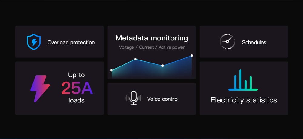 Dispune de măsurarea puterii în timp real, statisticile zilnice și lunare sunt afișate în aplicația mobilă. Noua versiune R3 acceptă descărcarea datelor de consum pe smartphone. Releul întrerupător inteligent oferă ajutor nu numai la pornirea/oprirea de la distanță și programată, dar ajută și la înțelegerea și optimizarea consumului de energie.